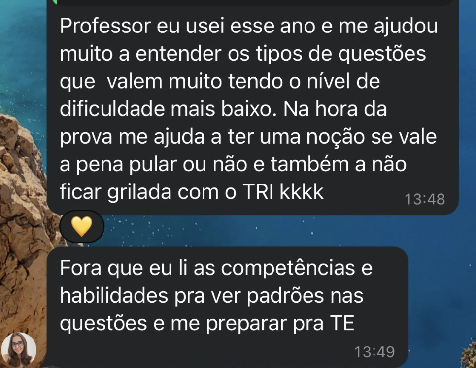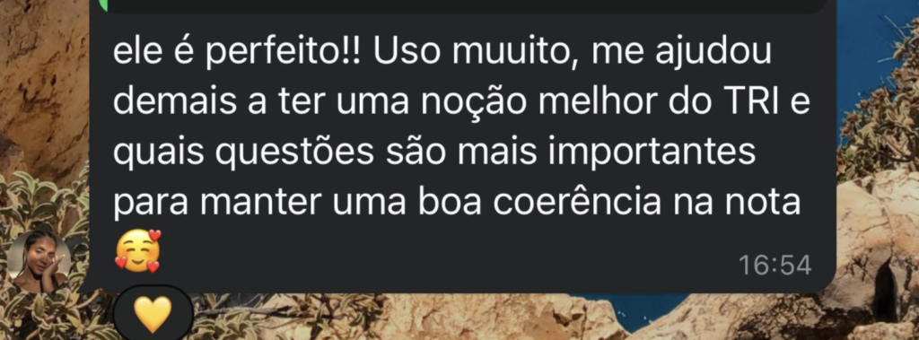 Por fim, seu TCC do mestrado foi sobre a Teoria de Resposta ao Item e, desde então, compartilha gratuitamente inúmeros materiais sobre o ENEM, TRI, SiSU e Microdados, tornando-se uma referência na área.